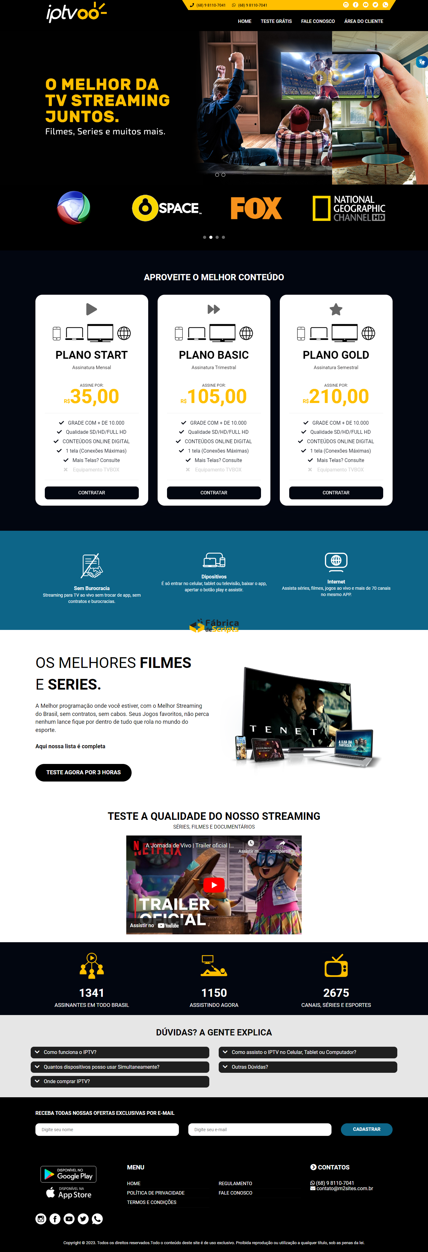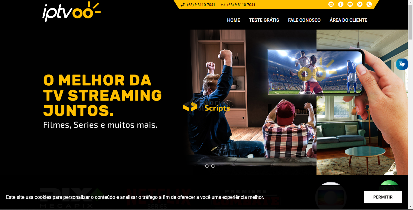 Site para Venda de IPTV Streaming de Vídeo 100% responsivo em PHP MySQL com Painel Administrador, fácil edição pelo painel, feito em PHP 5.6 a 7.0 MySQL, utilizando os Framework Bootstrap v3.3.7 e Font Awesome 5.7.0 para agiliza maior performance de navegação.
